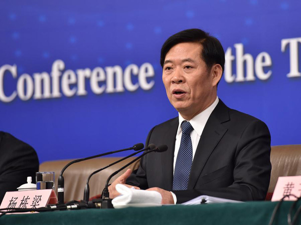 Yang Dongliang, director of the State Administration of Work Safety, answers questions at the press conference, March 10, 2015, in Beijing. [Photo/Xinhua]