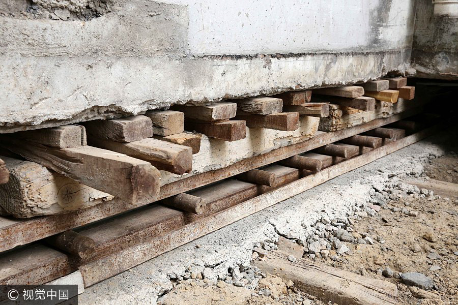 The photo shows the tools put under the building's foundation to move on July 1, 2017. [Photo/VCG]