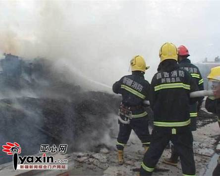 消防人員在現(xiàn)場(chǎng)對(duì)火勢(shì)進(jìn)行撲救。