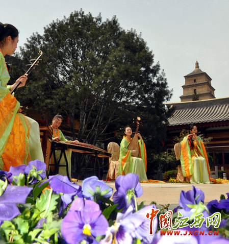 花萼樓前雨露新,長(zhǎng)安城里太平人。4月5日12時(shí),大雁塔下,西安大唐博相府的茉莉花樂(lè)隊(duì)奏樂(lè)迎賓,再現(xiàn)大唐盛世的太平景象。有人把陜西人性格歸結(jié)為生、冷、蹭、倔,這一點(diǎn)可以從秦俑的表情上顯示的淋漓盡致:那棱角分明的線條,那憨厚且淡然的微笑,那堅(jiān)韌挺拔的鼻子,還有那無(wú)所畏懼表情,“善武者沉默”。還有人說(shuō)黃土高坡賦予了陜西人率直、豪放的一面。然而古人卻把陜西人稱為太平人,我寧愿相信,陜西人普遍多了些文藝氣質(zhì),畢竟為千年的文化所熏陶,畢竟這里走出太多的文學(xué)藝術(shù)大家。