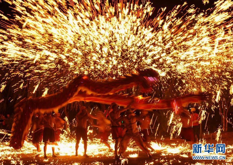 2月23日晚,火龍隊在昆明大觀公園內(nèi)表演舞“火龍”。當(dāng)晚,來自四川自貢的火龍隊在云南昆明大觀公園進(jìn)行精彩的“火龍”表演,迎接元宵佳節(jié)的到來。10多名赤膊的專業(yè)舞龍手在焰火中翻飛舞動,場面精彩熱烈,讓觀眾大飽眼福。新華社記者藺以光攝