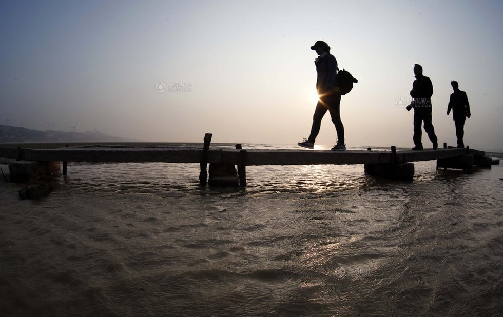 11月2日,游客行走在夕陽下的鄱陽湖底古石橋上。隨著我國第一大淡水湖鄱陽湖水位快速降至枯水位,位于湖底的明代古石橋也露出湖面,夕陽下的“千眼橋”越發(fā)顯得沉靜,厚重,滄桑,吸引大批游客前來觀賞和拍攝。沈俊峰