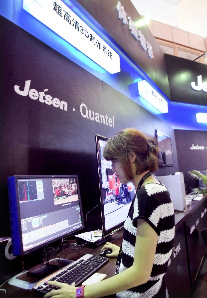 ??? 6月14日,展商在展示超高清3D制作設(shè)備及軟件。