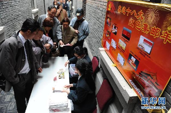 11月8日,在位于上海市興業(yè)路中共一大會址的新天地郵政所,市民在選購《中國共產(chǎn)黨第十八次全國代表大會》紀(jì)念封。新華社簽約攝影師賴鑫琳 攝