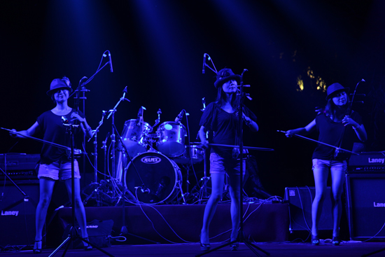 本屆音樂節(jié)還邀請了青春美女組合“二胡紅”,她們激情表演了二胡名曲《賽馬》以及聶耳音樂作品《金蛇狂舞》,贏得了臺下觀眾的陣陣掌聲。在花旦樂隊激情演唱中,一位樂迷激動地說,民俗搖滾比較清新,但對于八零后的樂迷來說,更喜歡這種重金屬、貝司帶來的視聽享受,最喜歡主唱“嘶吼”的感覺,雖然聽不清歌詞,但會被強烈的樂曲帶入享受音樂的快樂中。