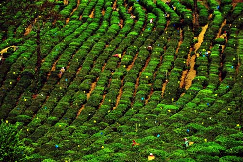 云南省南澗縣公郎鎮(zhèn)羅伯克茶場(chǎng)的彝家阿妹們正在采摘春茶。清明節(jié)前,隨著氣溫的上升,作為全國(guó)茶葉基地縣之一的大理南澗縣的10.8萬畝無公害生態(tài)茶進(jìn)入采摘期。由于連續(xù)四年旱情影響,南澗縣的春茶比往年退后,收成也減少一半左右,茶農(nóng)為減少損失抓住春茶價(jià)俏的機(jī)遇,抓緊采茶制茶,供應(yīng)市場(chǎng)。(通訊員 適志宏 楊訓(xùn)波 記者 李映青)