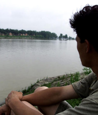 beneath floodwaters on July 6, 2003, after a dyke on Huaihe River dyke was