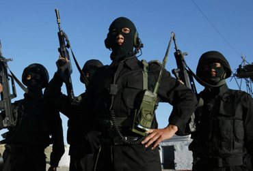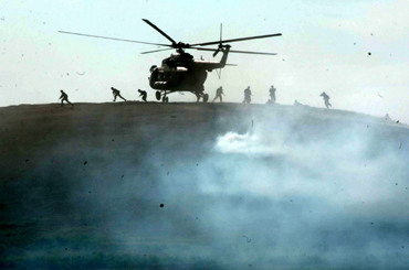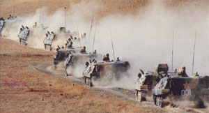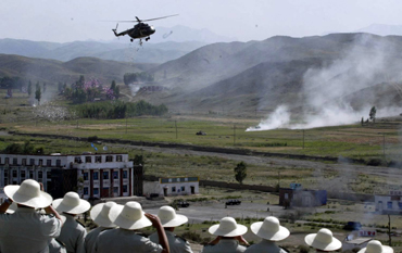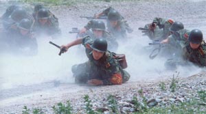 Chinese army takes part in its first counter-terrorism exercise in Northwest China's Xinjiang Uygur Autonomous Region August 25, 2003. The drill was aimed at improving the army's capability in this field, and there was also a seminar on related issues. [Xinhua]