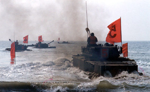 Soldiers from a unit of the Guangzhou Military Area Command are in an overwater driving training. The unit are taking all kinds of measures to enhance its fighting capabilities. [PLA Daily]