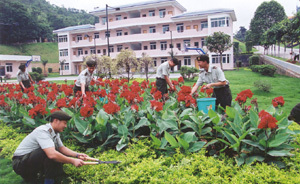 A unit of the Guangzhou Military Area Command strives hard to do a better job in afforestation of their barracks and has been cited as "the advanced unit of afforestation " by the Guangzhou Military Area Command recently. In the picture, the servicemen are trimming grasses and flowers.[PLA Daily]