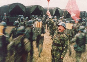 Militias take part in shooting exercise in Yuanling, Central China's Hunan Province on June 19, 2003. Local authorities are taking all kinds of measures to enhance the fighting capabilities of the militias. [newsphoto.com.cn]