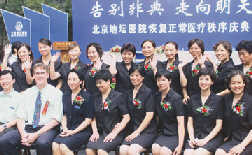 Female doctors and nurses at Beijing Ditan Hospital pose for a photograph after the country's last two SARS patients were discharged on August 16. [newsphoto.com.cn]