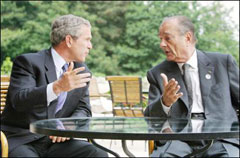 French President Jacques Chirac (R) and US President George W Bush [AFP/File]
