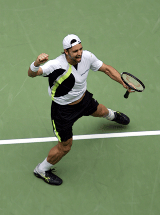 Kiefer of Germany celebrates beating Chela of Argentina at the Australian Open tennis tournament in Melbourne. [Reuters]