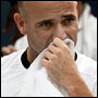 Andre Agassi lost to Nikolay Davydenko, then pulled out of the Tennis Masters Cup less than an hour after second-ranked Rafael Nadal withdrew with an injured left foot.