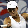 American world number one Lindsay Davenport carved out a 6-4 6-4 victory over hard-hitting Li Na of China to reach the second round of the U.S. Open on Tuesday.