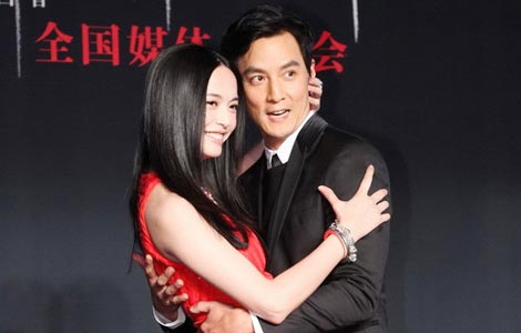 Cast members attend a press conference for the premiere of movie "Caught in the Web" in Beijing, capital of China.