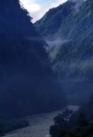 It's a primitive and isolated river valley, flanked by Gaoligong Mountain, 5,000 m above sea level, and Dandanglika Mountain, 4,000 m above sea level. Straight firs and dense pine trees cover the banks of the winding river and are home to rare birds, animals and valuable raw materials for drugs. But when the Moliwang Pass over Gaoligong Mountain is blocked by heavy snow every October, the whole valley is locked in winter stillness until spring returns. They communicate with neighbors on the other side of the valley by crossing the river on hanging rattan or wire ropes.