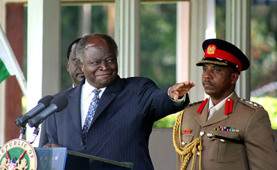 4月13日,肯尼亞總統(tǒng)齊貝吉在內(nèi)羅畢總統(tǒng)府發(fā)表講話,宣布由他領(lǐng)導(dǎo)的民族團(tuán)結(jié)黨與奧廷加領(lǐng)導(dǎo)的“橙色民主運(yùn)動”組建的聯(lián)合政府正式成立。