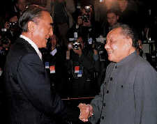 1986年11月9日,中顧委主任鄧小平在北京人大會堂會見來訪的日本首相中曾根康弘。