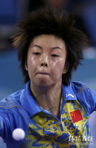 中國日報網(wǎng)站環(huán)球在線消息:北京時間8月22日,北京奧運會乒乓球比賽展開女單半決賽的爭奪,在剛剛結(jié)束的一場焦點對決中,頭號種子張怡寧發(fā)揮出色,在先失一局的不利情況下連扳四局,以4-1(9-11、11-8、12-10、11-8、11-5)逆轉(zhuǎn)戰(zhàn)勝新加坡選手李佳薇,由于另一場半決賽在兩名中國選手王楠、郭躍之間進(jìn)行,就此為中國乒乓球隊鎖定了女單金牌。