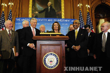 2月13日,美國眾議院議長南?!づ迓逦髟谌A盛頓國會山舉行的記者會上發(fā)表講話。當日,美國國會眾議院投票通過了經(jīng)濟刺激計劃。根據(jù)國會參眾兩院11日達成的經(jīng)濟刺激計劃的最終文本,計劃總額為7890億美元,其中35%用于減稅,65%用于政府投資。但據(jù)國會預算辦公室的最新計算結(jié)果,計劃總額應為7870億美元。新華社記者張巖攝