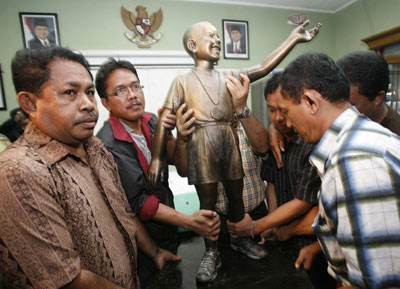中國日報網(wǎng)消息:據(jù)美國媒體報道,迫于民眾抗議壓力,此前豎立在印度尼西亞首都雅加達市塔曼門登公園內(nèi)的少年奧巴馬(美國總統(tǒng))銅像于2月21日晚被移至奧巴馬曾經(jīng)就讀的母校門登第一公立小學。