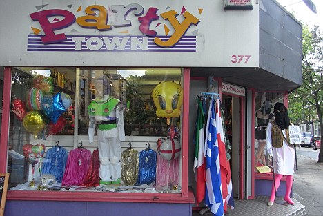 這家名叫“聚會小鎮(zhèn)”的道具店位于南約克郡謝菲爾德市。店鋪為吸引路人眼球,在門口立了一個身穿阿拉伯長袍和迷彩服、斜跨彈夾、戴墨鏡的蒙面“卡扎菲”,它手中還托著一塊牌子,上面用調(diào)侃的口氣寫著:“你沒有看見我,對吧?”