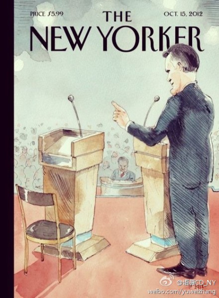 第一輪上周結(jié)束后,大家普遍都認為奧巴馬好像不在狀態(tài)。The New Yorker 把當時的情景用這張封面描述的太到位。