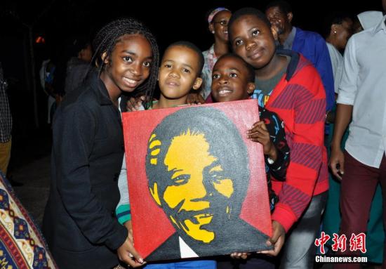 2013年12月6日凌晨,在得知南非前總統(tǒng)、反種族隔離斗士納爾遜·曼德拉逝世的消息后,約翰內(nèi)斯堡的民眾在曼德拉生前的住宅外集會(huì),送別摯愛的“南非國(guó)父”。中新社發(fā)劉磊 攝