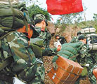 組圖:武警背雷管炸藥徒步翻山赴唐家山堰塞湖