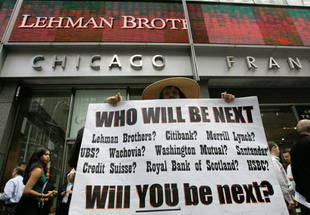 半年不到,全球最知名的五大投行當(dāng)中,排名第三的美林被美國(guó)銀行收購(gòu),排名第四的雷曼兄弟申請(qǐng)破產(chǎn),排名第五的貝爾斯登早早被摩根大通收編。三位昔日投資銀行舞臺(tái)上的頂級(jí)明星已經(jīng)以不同姿態(tài)對(duì)臺(tái)下心態(tài)各異的觀眾們,完成了謝幕或者告別。