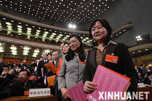 3月15日,十一屆全國人大一次會(huì)議在北京人民大會(huì)堂舉行第五次全體會(huì)議,選舉第十一屆全國人民代表大會(huì)常務(wù)委員會(huì)委員長、副委員長、秘書長;選舉第十一屆全國人民代表大會(huì)常務(wù)委員會(huì)委員;選舉中華人民共和國主席、副主席;選舉中華人民共和國中央軍事委員會(huì)主席。這是代表在排隊(duì)投票。新華社記者劉衛(wèi)兵攝
