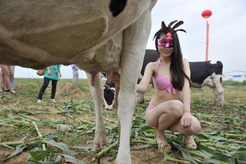 眾多著比基尼的“牛模特”助陣“奶牛選美大賽”。