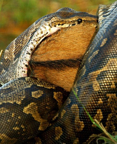 非洲蟒蛇活生生吞食羚羊 震驚場面令人心顫