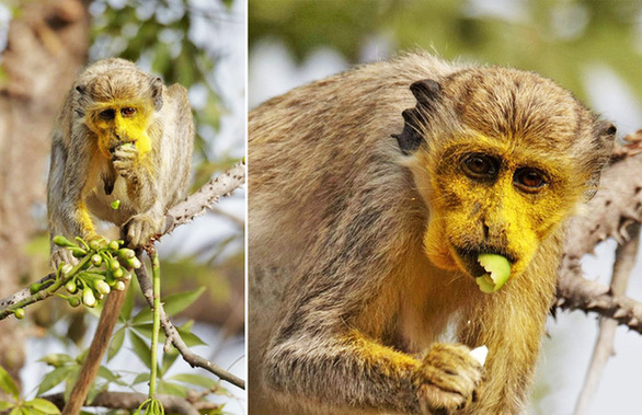 貪吃猴子偷吃木棉花臉上沾滿黃色花粉 塞內(nèi)加爾Niokolo-Koba國家公園,一群狨猴在樹上偷吃木棉花,粘得滿臉都是黃色花粉,讓人一眼就看的出誰最“貪吃”。一開始,它們還假裝優(yōu)雅的摘一朵下來放在鼻子上聞,當(dāng)發(fā)現(xiàn)很對自己的口味后就紛紛搶著吃了起來。