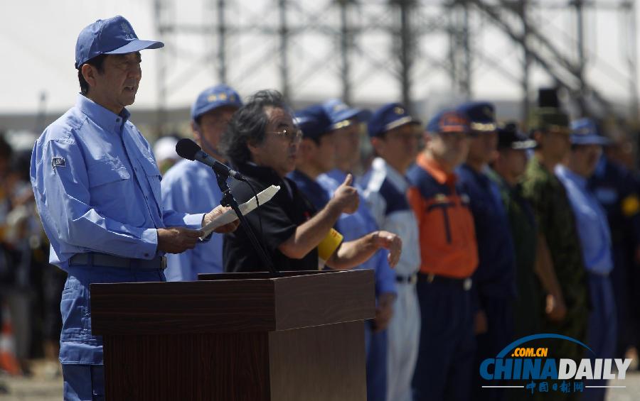 安倍晉三來到千葉市進(jìn)行視察,在年度防災(zāi)演練的閉幕式上講話。