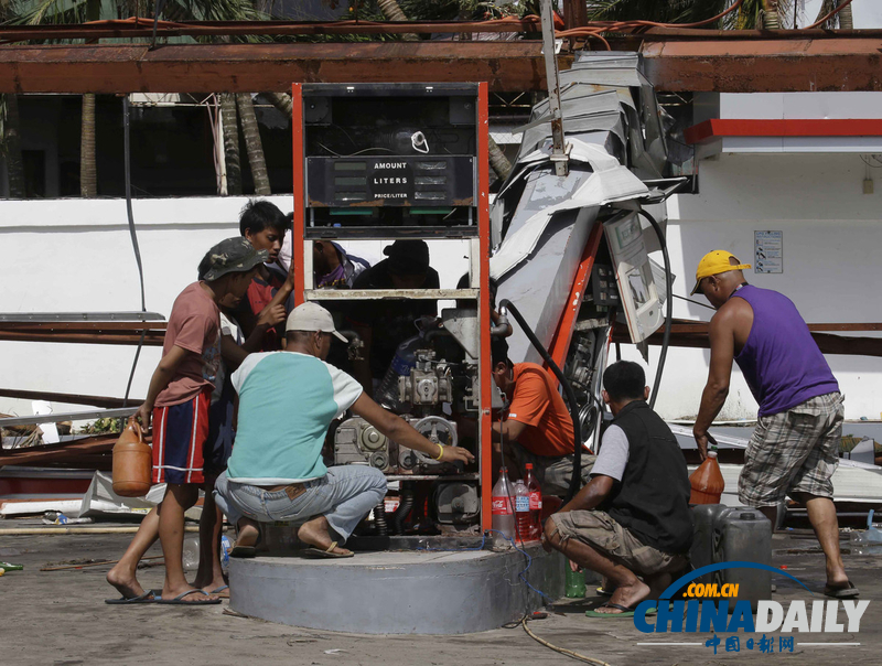 當(dāng)?shù)貢r間2013年11月14日,菲律賓塔克洛班,災(zāi)民排隊領(lǐng)取燃料。據(jù)菲律賓社會福利部提供的數(shù)據(jù),強(qiáng)臺風(fēng)“海燕”侵襲菲律賓造成的遇難人數(shù)是4460人,另有92萬人流離失所,災(zāi)民人數(shù)總計達(dá)1180萬人。(圖片:東方IC)
