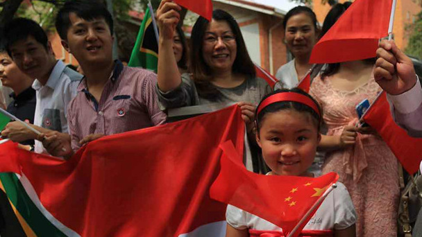 在習(xí)主席下榻的酒店附近,一早就吸引了100多名當(dāng)?shù)厝A人華僑恭候習(xí)主席到來(lái),有的已經(jīng)等了5個(gè)多小時(shí)。記者發(fā)現(xiàn),有人打出了“習(xí)主席好、彭老師好”的橫幅。
