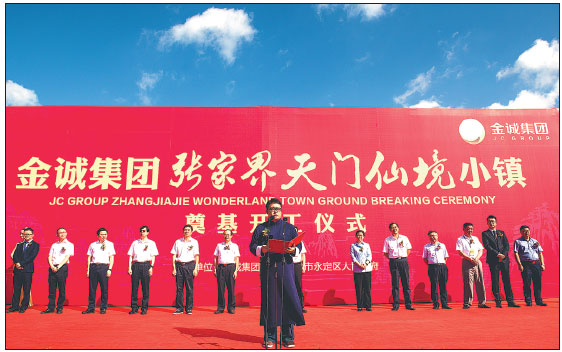 JC group's executives and local government officials mark the groundbreaking ceremony of the Zhangjiajie Wonderland Town, one of the urban projects the company has signed in China. |