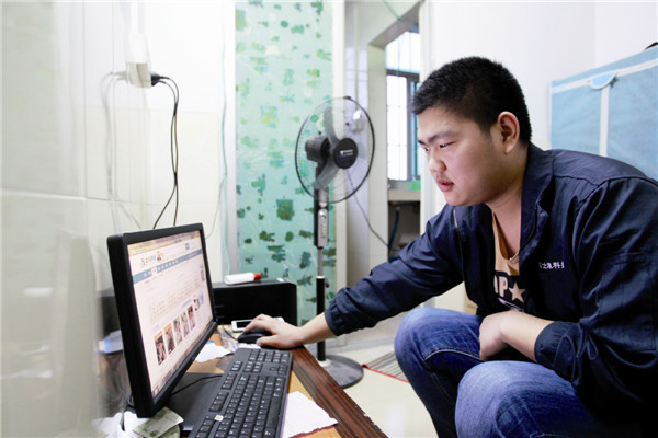 Lu mostly spends his day off each week watching movies on his PC. Photos by Zou Hong/China Daily  |
