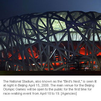 Starting from Tian'anmen Square at 7:30 am, the 42.195 km route will go through six districts - Xuanwu, Dongcheng, Chongwen, Xicheng, Haidian and Chaoyang - ending at the National Stadium, or "Bird's Nest".