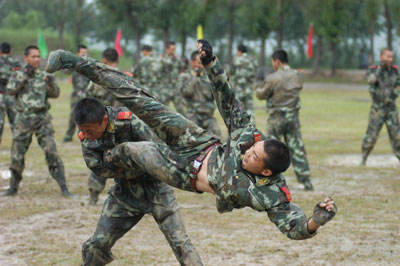 Soldiers take part in a military demonstration to celebrate the 80th anniversary of the founding of the People's Liberation Army in Mudanjiang, Northeast China's Heilongjiang Province August 1, 2007. More than 1000 military personnel take part in the demonstration. [Newsphoto]