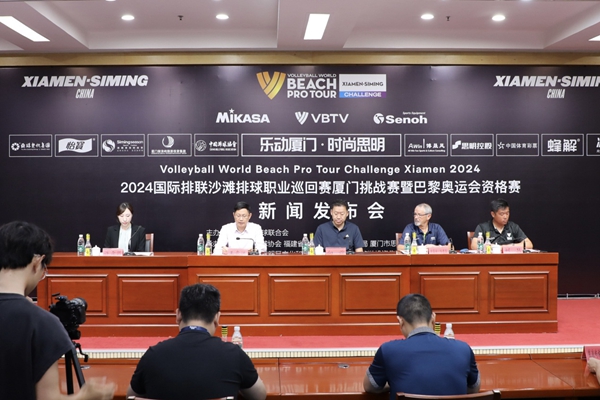 A press conference for the Volleyball World Beach Pro Tour Challenge Xiamen 2024. [Photo by Lin Yuyang for chinadaily.com.cn]