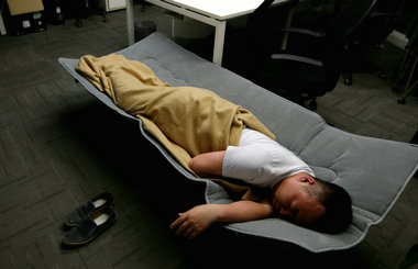 Office workers sleeping on the job is a common sight in China, where a surplus of cheap labor can lead to downtime at work.