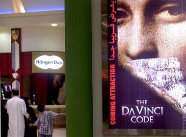 passes by an advertisement for the movie 'The Da Vinci Code' on Tuesday,