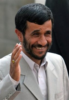 |  Iranian President Mahmoud Ahmadinejad, waves