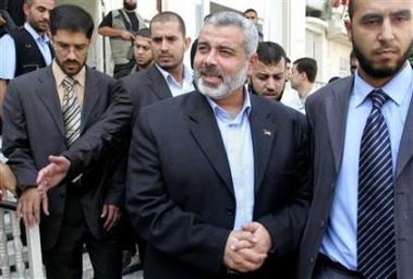 Haniyeh (2nd R) arrives to his office in Gaza September 17, 2006.