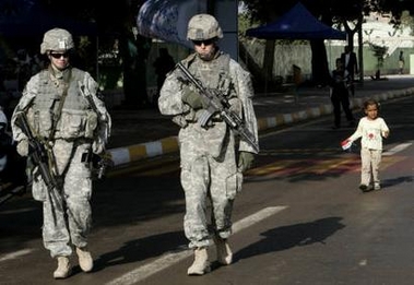 US soldiers patrol an area in the outskirts of the oil-rich city of Kirkuk, north of Baghdad, during a joint US and Iraqi military operation targeting Al-Qaeda militants. Around 5,000 American troops will head home later this month as part of a withdrawal plan announced by President George W. Bush, US military spokesman Rear Admiral Gregory Smith said Saturday. [Agencies]