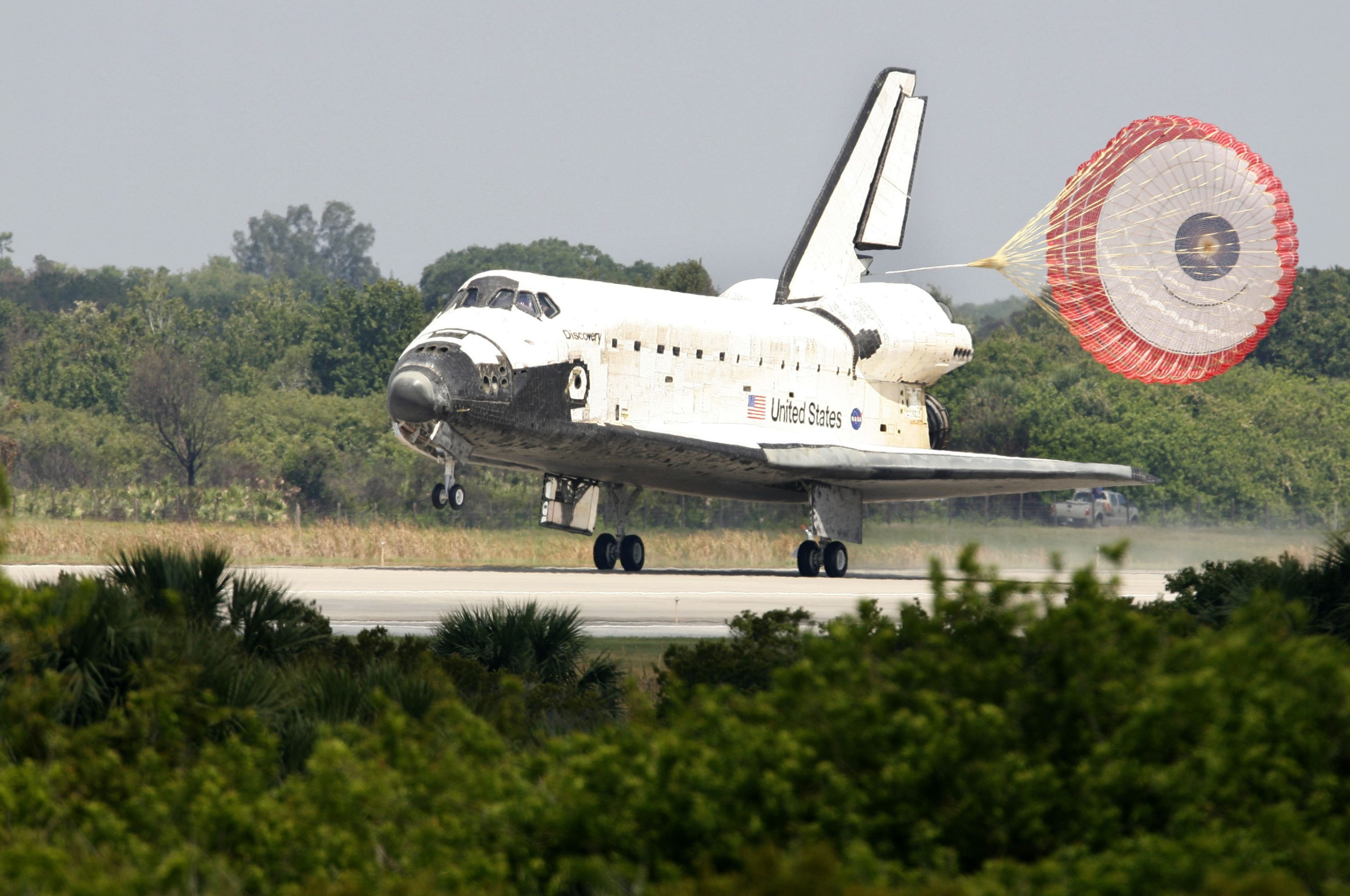 The space shuttle Discovery lands ending Mission STS-124 to the International Space Station, at the Kennedy Space Center in Cape Canaveral, Florida June 14, 2008. [Agencies]